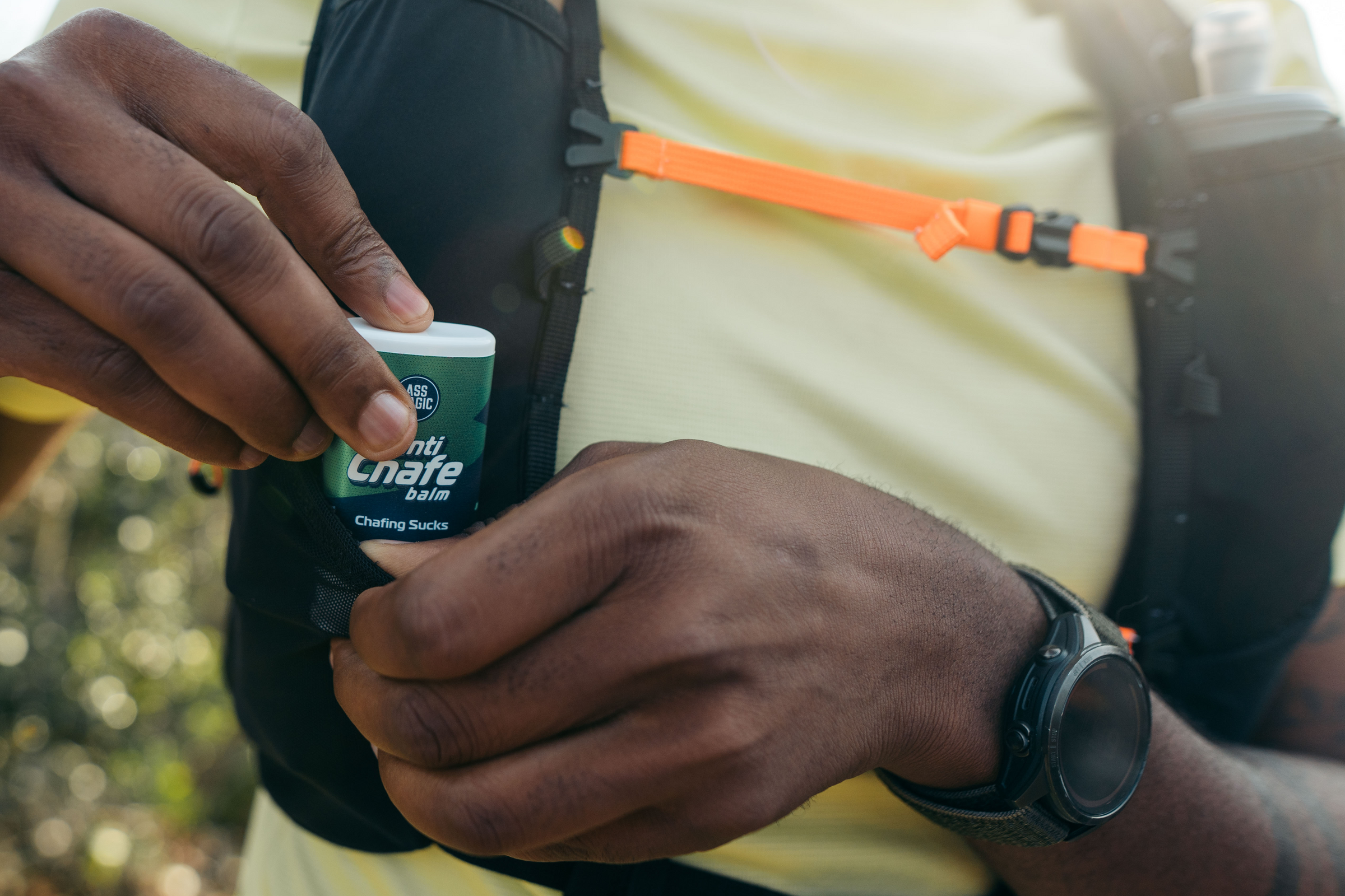 The ASS MAGIC Anti-Chafe balm is sweat and water-resistant, offering long-lasting protection for up to several hours - even during ultra-endurance events. Apply once and generously before your run and reapply only as needed. For efforts longer than 4-5 hours, we do recommend having some on hand to reapply. We have launched our new Anti-Chafe Balm Mini-Me for just this use case - perfect for squeezing into your running belt or pack.